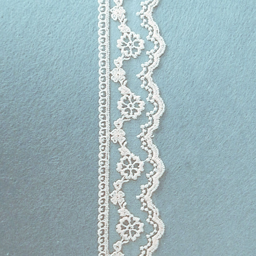Кружево, изысканный нежный вышитый на мягком сетчатом материале рисунок. Декоративная кружевная тесьма подходит для самых разных видов рукоделия - при пошиве одежды, для декорирования в скрапбукинге, в куклоделии и т.д.