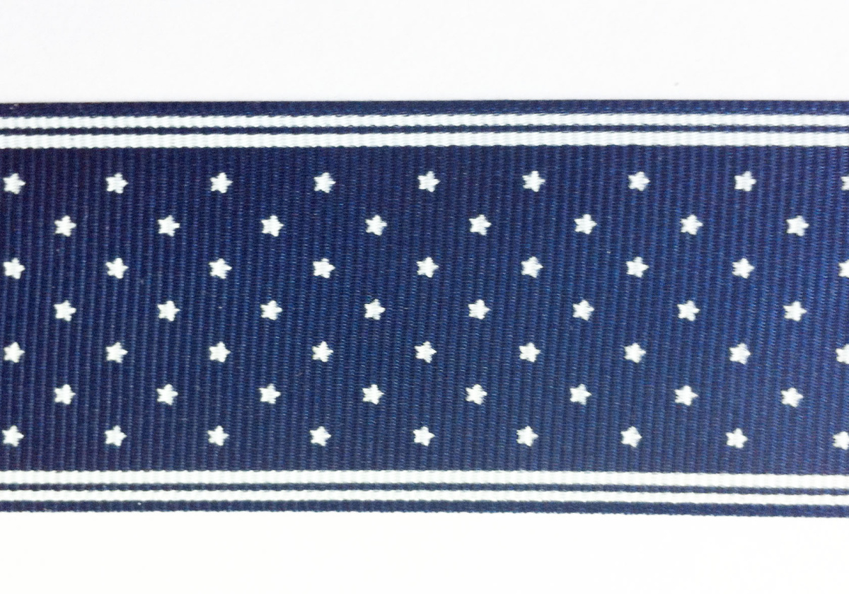 Репсовая ленточка 38 мм с белыми маленькими звездочками на темно-синем фоне. Цена указана за 1 м