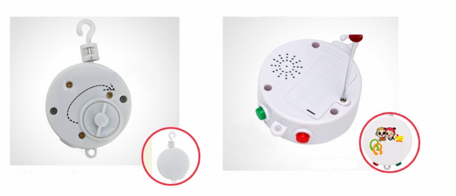 Блоки снабжены крючками для соединения с кронштейном и крестовиной детских мобилей