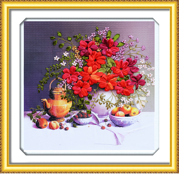 особенно эффектно смотрится на полотнах больших размеров. А атласность ленты создает