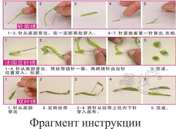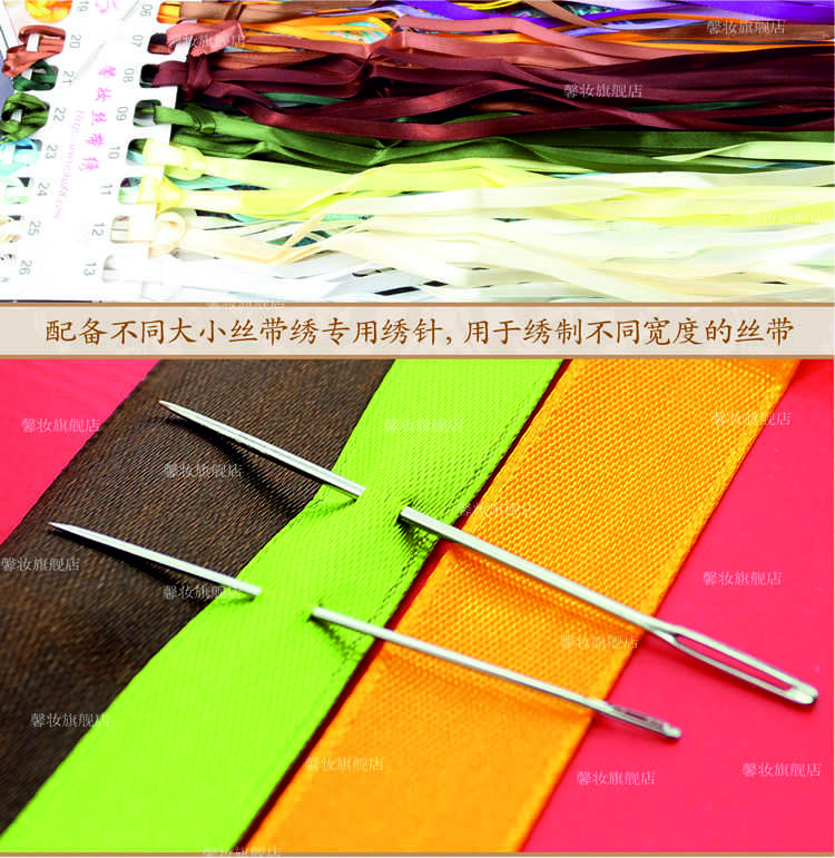 В набор входит ткань с символьной схемой, нанесенной водорастворимыми чернилами, органайзер с атласными лентами, мулине х/б, игла для ленточек и игла для мулине, инструкция с иллюстрациями на китайском языке