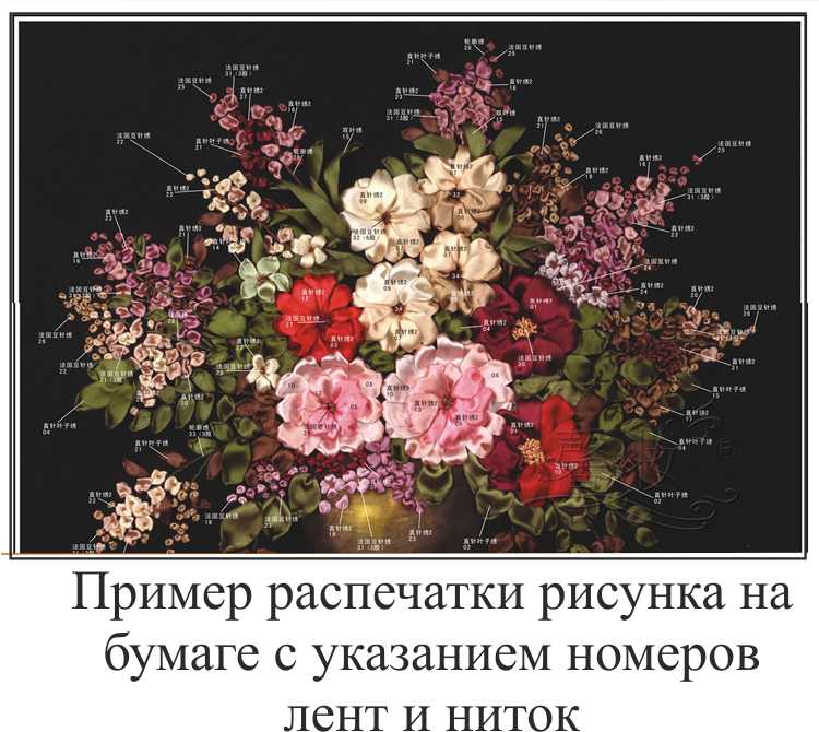 В набор входит плотная ткань с принтом, органайзер с атласными лентами 26 цветов, мулине х/б, игла для ленточек и игла для мулине, инструкция с иллюстрациями на китайском языке.