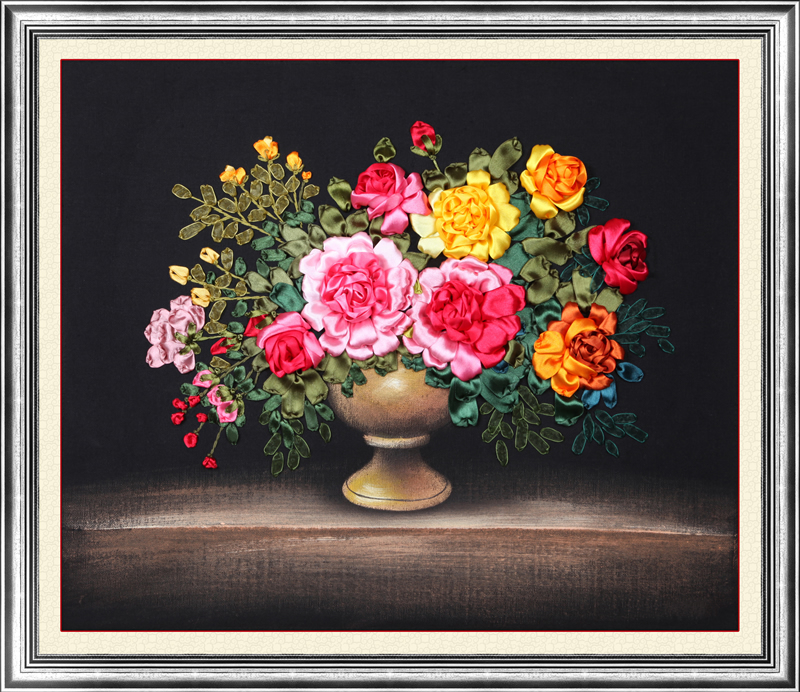 Набор для вышивки атласными лентами Яркие розы Размер 50*40 см