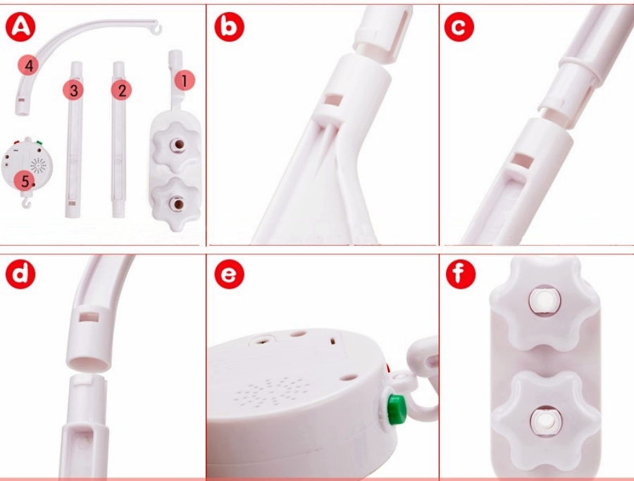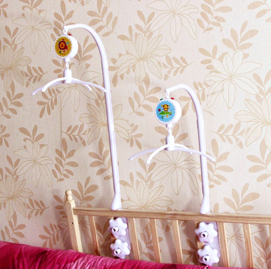 Мобили также могут монтироваться с  музыкальными механизмами - они снабжены крючками для соединения с кронштейном и крестовиной. Пока играет музыка, блок вращает крестовину.
