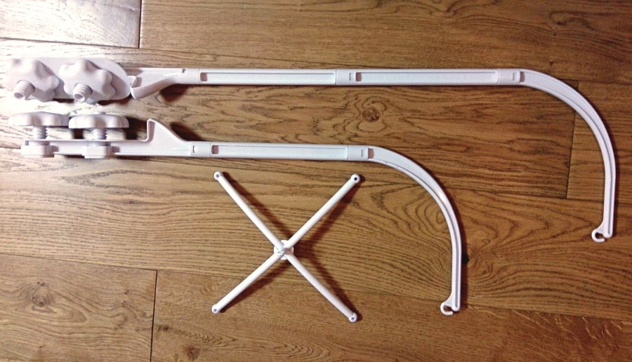 Основа (держатель, крепление) для детского мобиля выполнена из высококачественного пластика, состоит из кронштейна и крестовины.