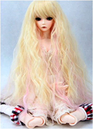 Парик для кукол длинный волнистый биколор Бело-розовый