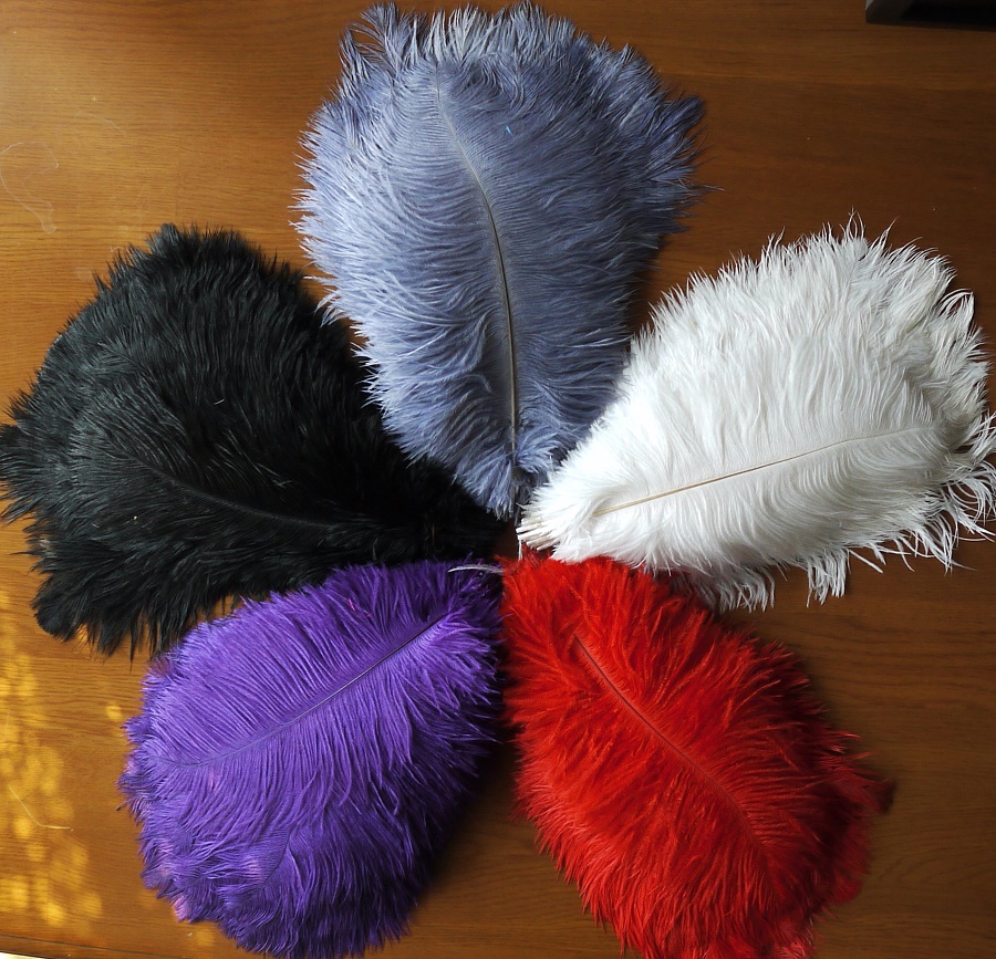 Натуральные перья страуса различной расцветки.