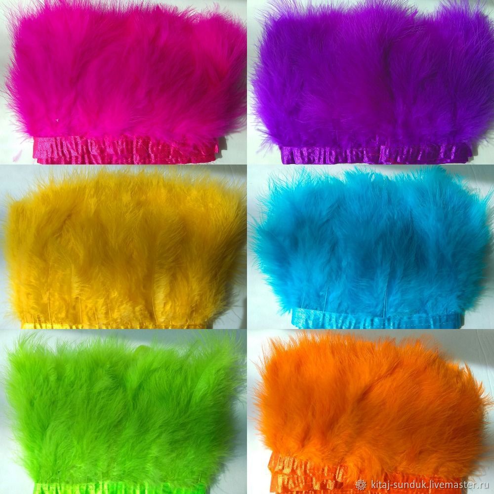Перья индейки на текстильной ленте. Такая нарядная и оригинальная перьевая тесьма используется для декора одежды, шляпок, сумочек, при создании искусственных цветов, брошей, изготовлении штор и портьер и т.д.