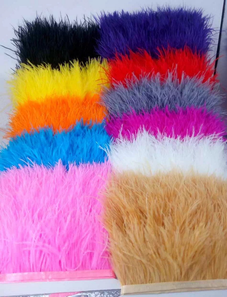 Перья страуса самых разных цветов на текстильной ленте. Такая нарядная и оригинальная перьевая тесьма из натуральных перьевиспользуется для декора одежды, шляпок, сумочек, при создании искусственных цветов, изготовлении штор и портьер и т.д.