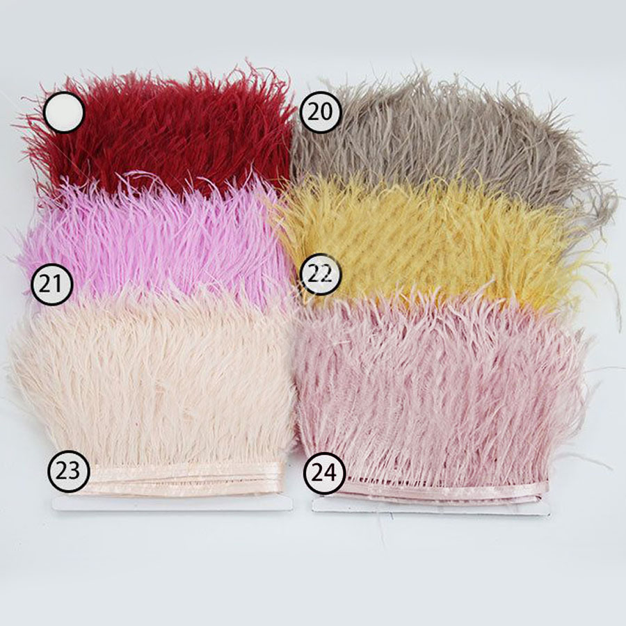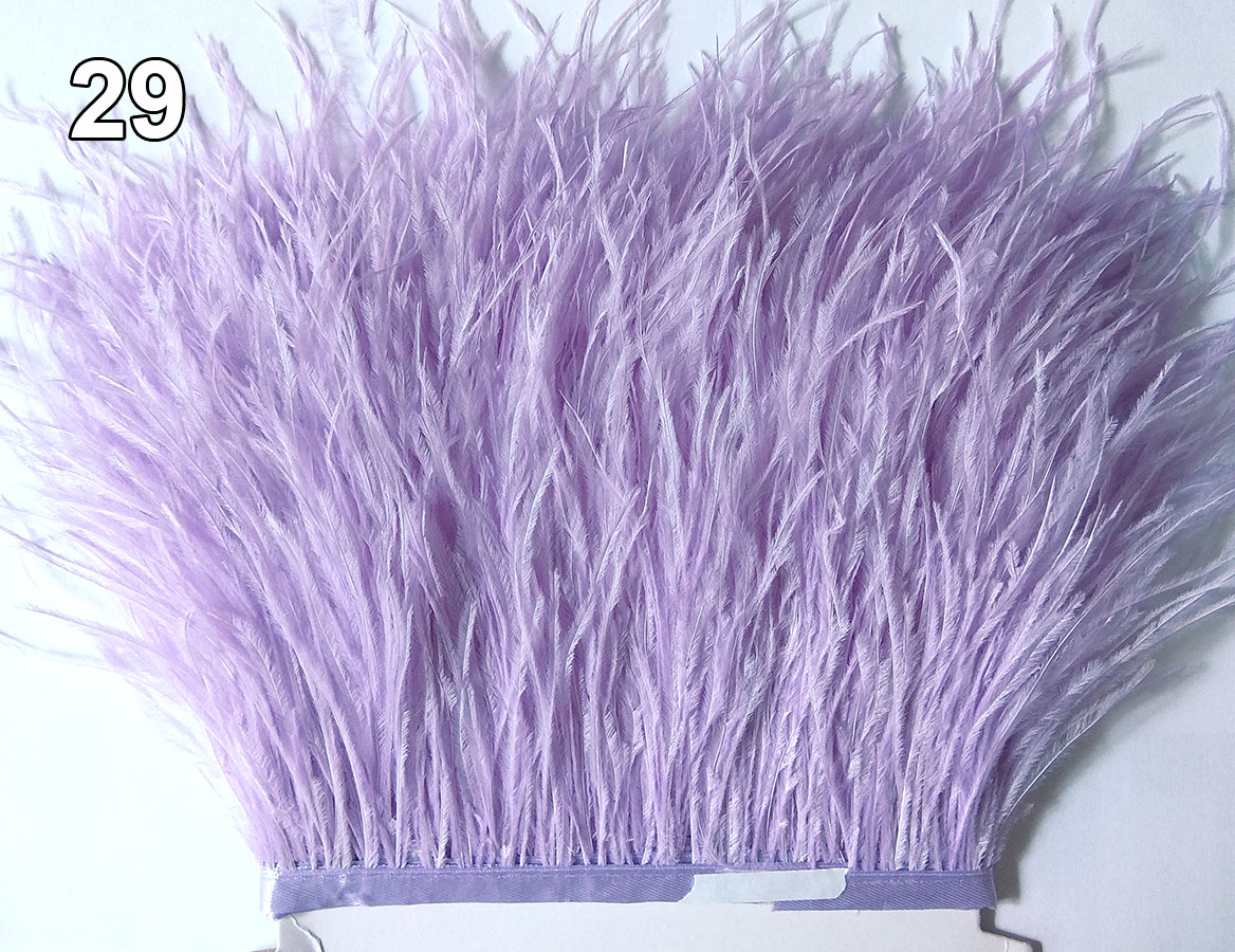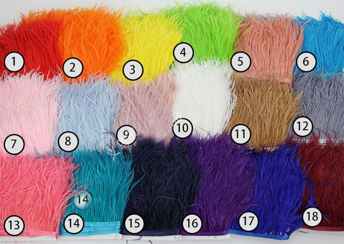 Перья страуса самых разных цветов на текстильной ленте. Такая нарядная и оригинальная перьевая тесьма из натуральных перьевиспользуется для декора одежды, шляпок, сумочек, при создании искусственных цветов, изготовлении штор и портьер и т.д.