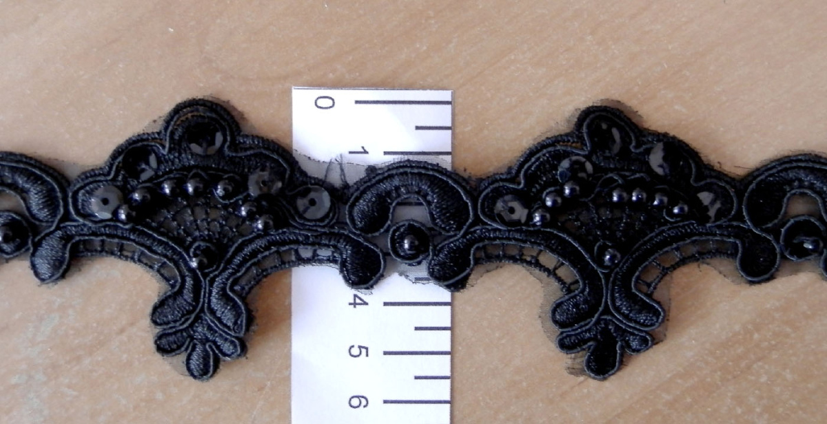 Тесьма декоративная с бусинами Черная