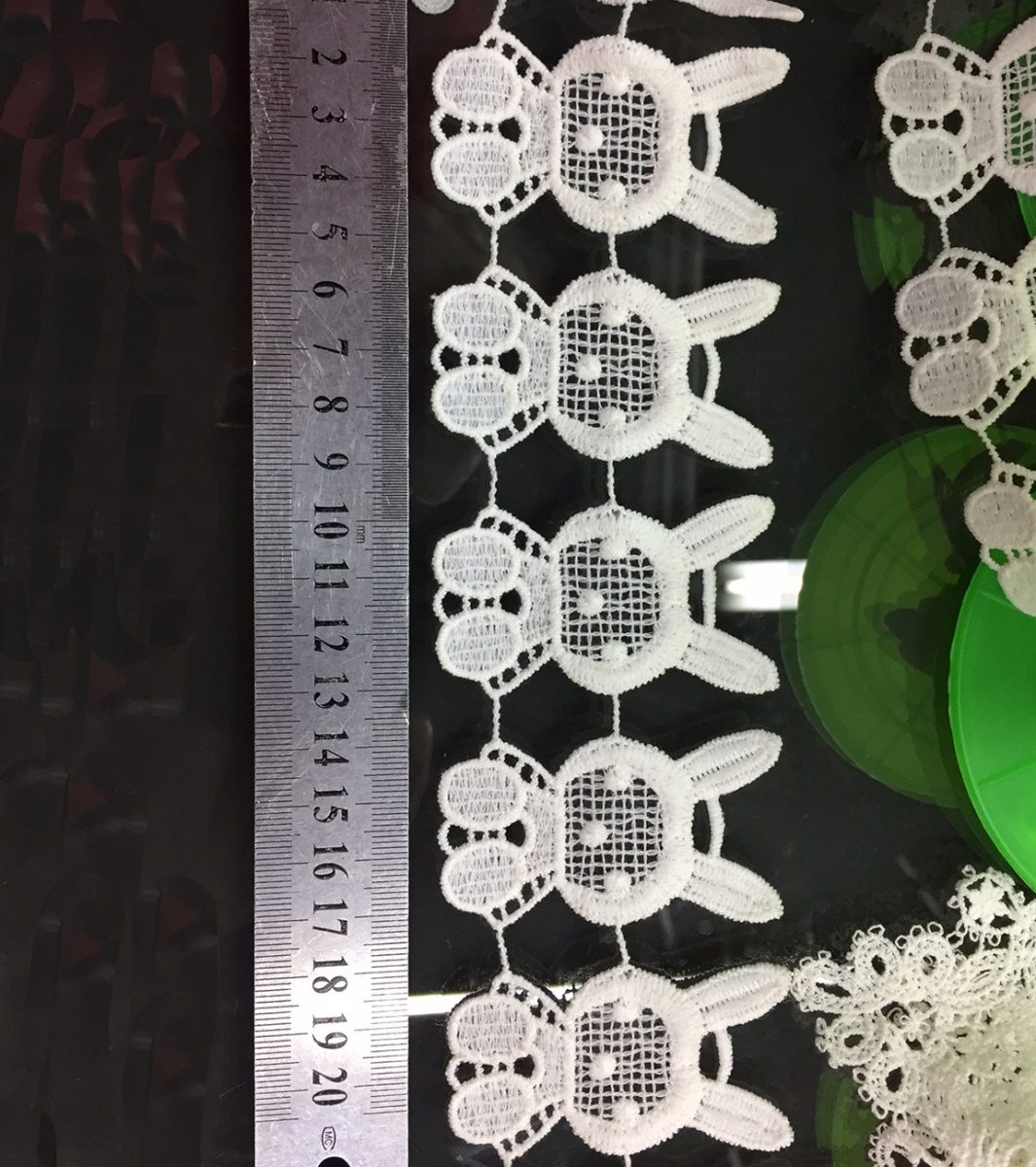 Ажурное белое кружево в виде маленьких зайчиков