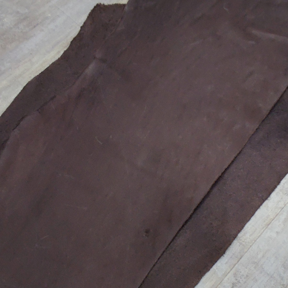 Пола без покрытия (в красте), производства Россия. Толщина 2,1-2,5. Подходит для изготовления ножен, ошейников, ремешков и прочих мелких изделий. В меру пластичная, не сухая, плотная. Бахтарма с низким ворсом. Сортность: без сорта.