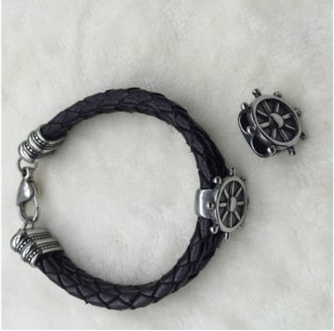 Бусины с морской символикой в виде штурвала для двух ремешков диаметром 6 мм.