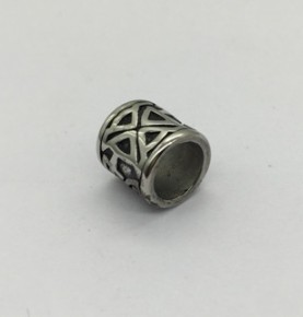 Бусины для браслета из шнура круглого сечения - классической цилиндрической формы с орнаментом, отверстие круглое под шнур диаметром 8 мм, внешние размеры 12х11 мм.