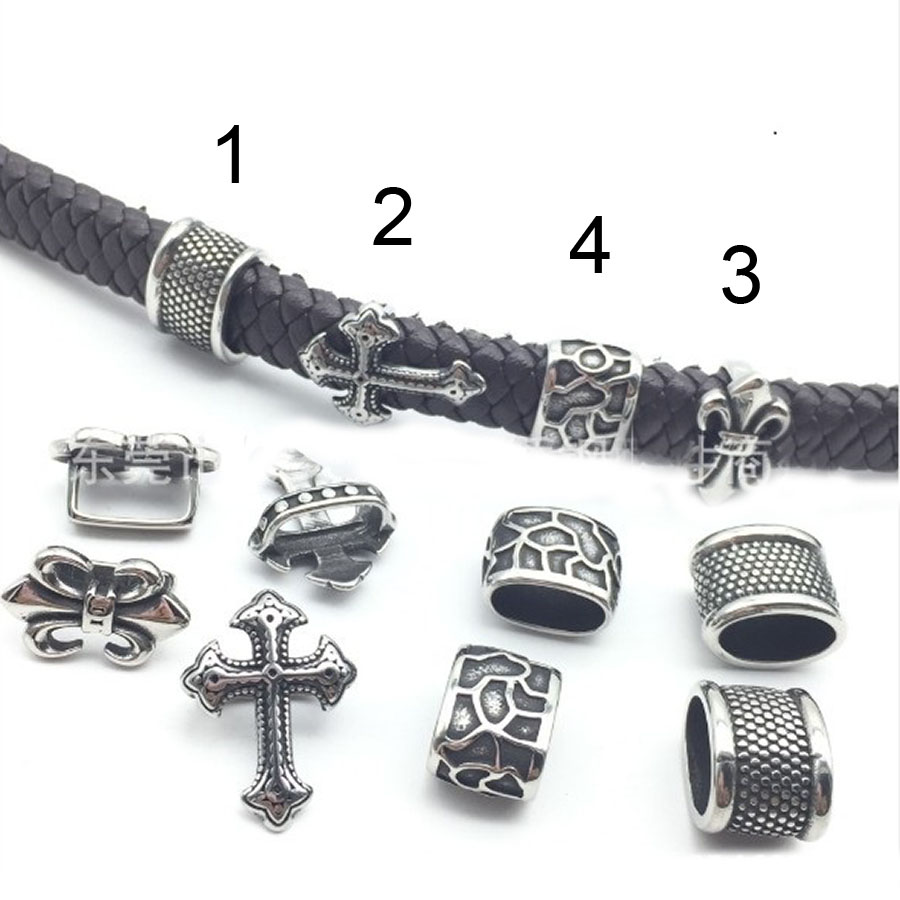Бусины из нержавеющей стали для оформления браслетов из кожаных шнуров в стиле регализ. Бусины для кожаных браслетов имеют овальное отверстие с сечением 12х6 мм