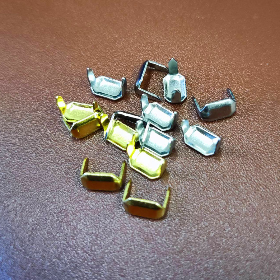 Маленькие зажимные клепки (скобы) для скрепления небольших кожаных деталей, для украшений, тренчиков ремней, сумок и других швейных изделий.