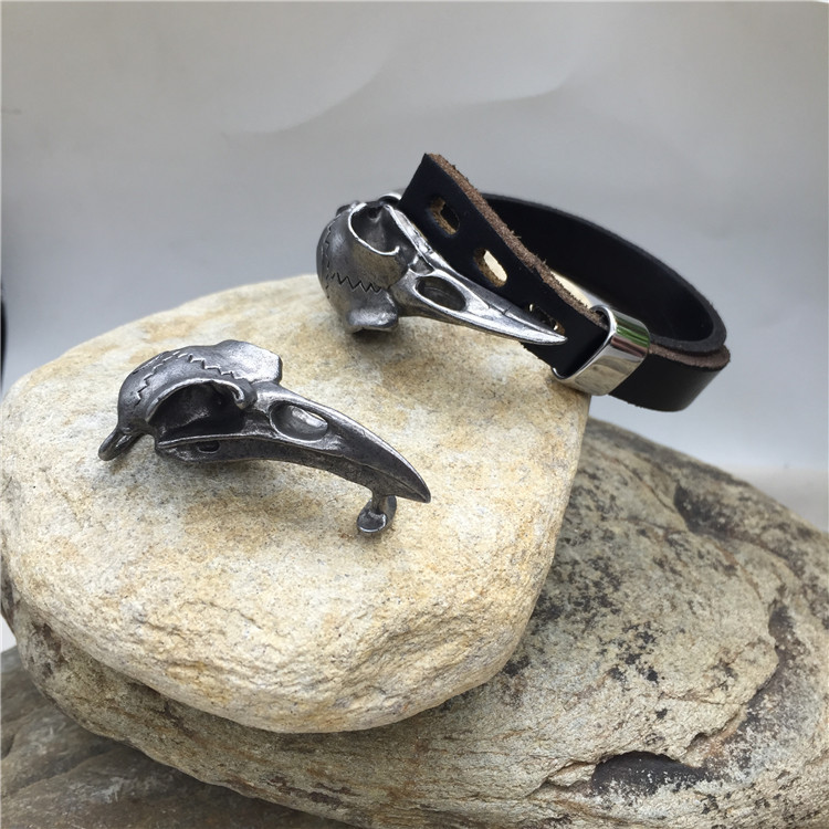 Застежка 13х5 мм для браслетов с шипом Череп Ворона Сталь  BR-z52 - фото товара