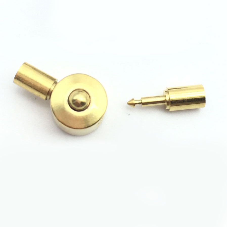 Замок для браслета, чокера в виде цилиндра на шнур круглого сечения диаметром около 3 мм, внешний размер - 22х9 мм. С одной стороны в застежке есть отверстие для вклеивания шнура,  с другой стороны отверстие для вклеивания второго конца шнура. Замочек открывается нажатием на кнопочку.