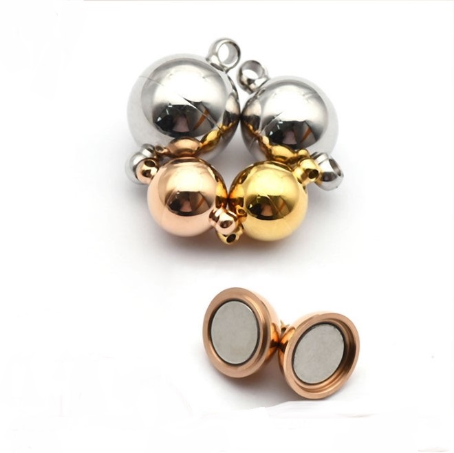 Застежка магнитная - диаметр шарика 6 мм, 8 мм, 10 мм, с "петельками" диаметра 1,2 мм для шнура -1мм