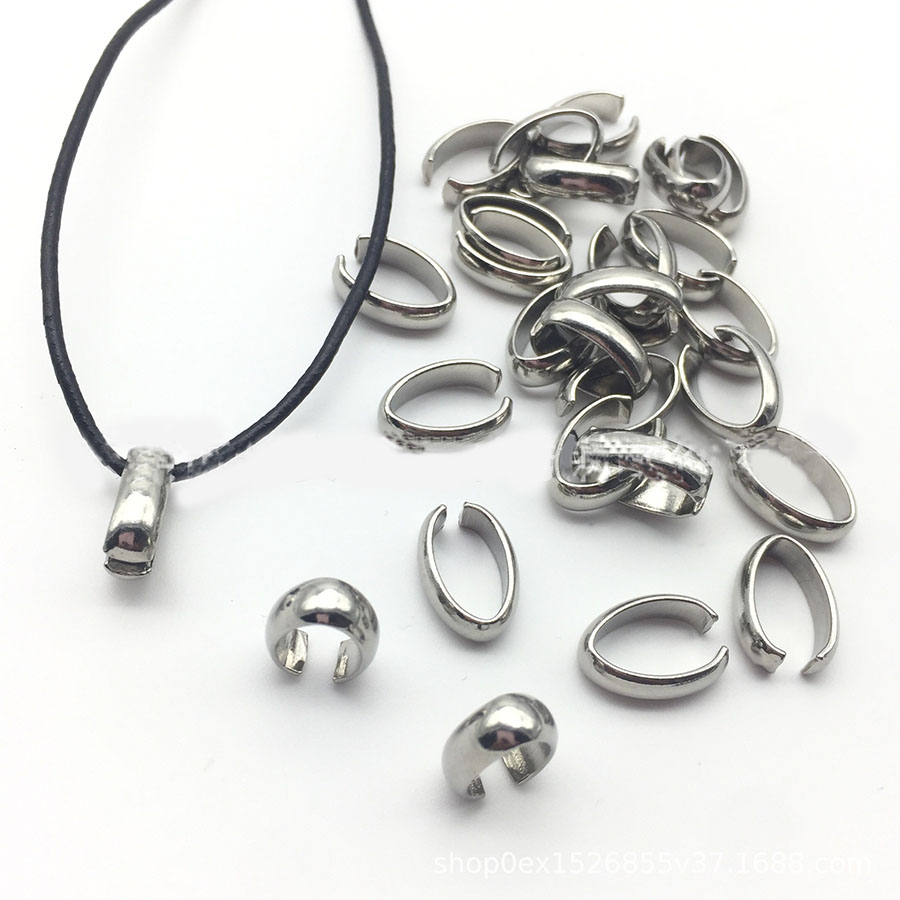 Стальная скоба (зажим, кольцо соединительное) для подвеса кулонов, подвесок, декора на кожаный шнур представленв в двух моделях: в форме овала и в форме "подковы"