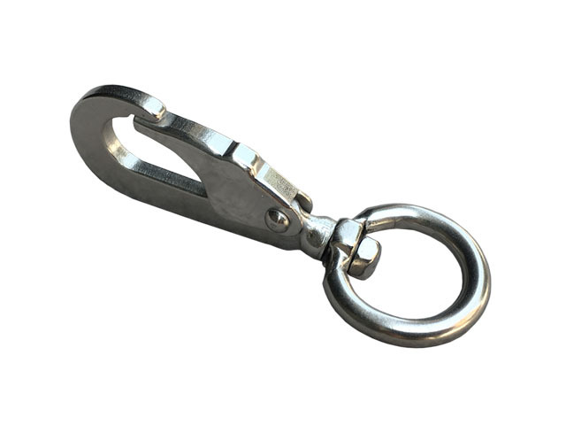 Поводковый поворотный карабин из нержавеющей стали AISI 304. Российский аналог — 08Х18Н10. Аустенитная нержавеющая сталь, с низким содержанием углерода. Легко поддается сварке, полировке, устойчива к межкристаллитной коррозии.
