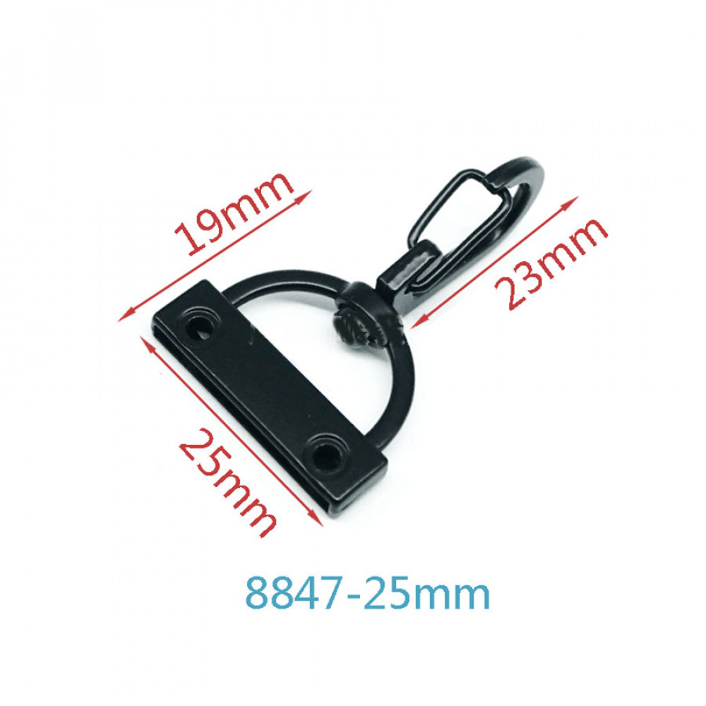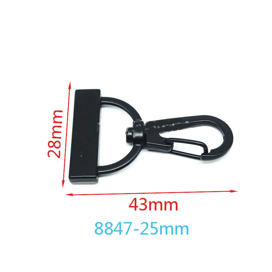 Карабин поворотный. Размеры: место крепления - 25 мм, длина карабина - 43 мм. Остальные размеры см. на фото