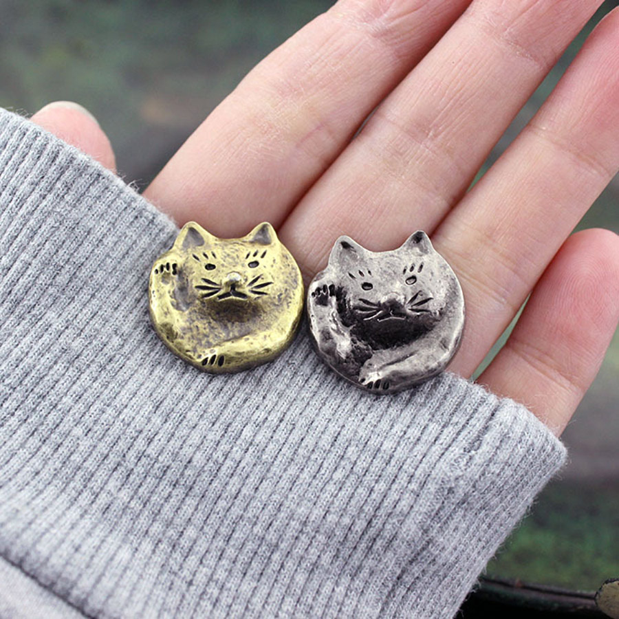 Металлические украшения для кожи - кончо в виде головы и лапы Манэки-нэко, также известного как «Кот счастья», «Денежный кот» или «Кот удачи» — распространённой фигурки, которая, как полагают, приносит её владельцу удачу.