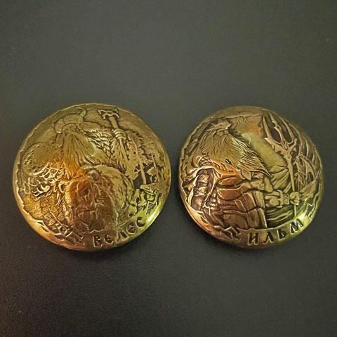 Кончо винтовые - металлические украшения для кожи c изображением богов славянской мифологии от российского производителя.