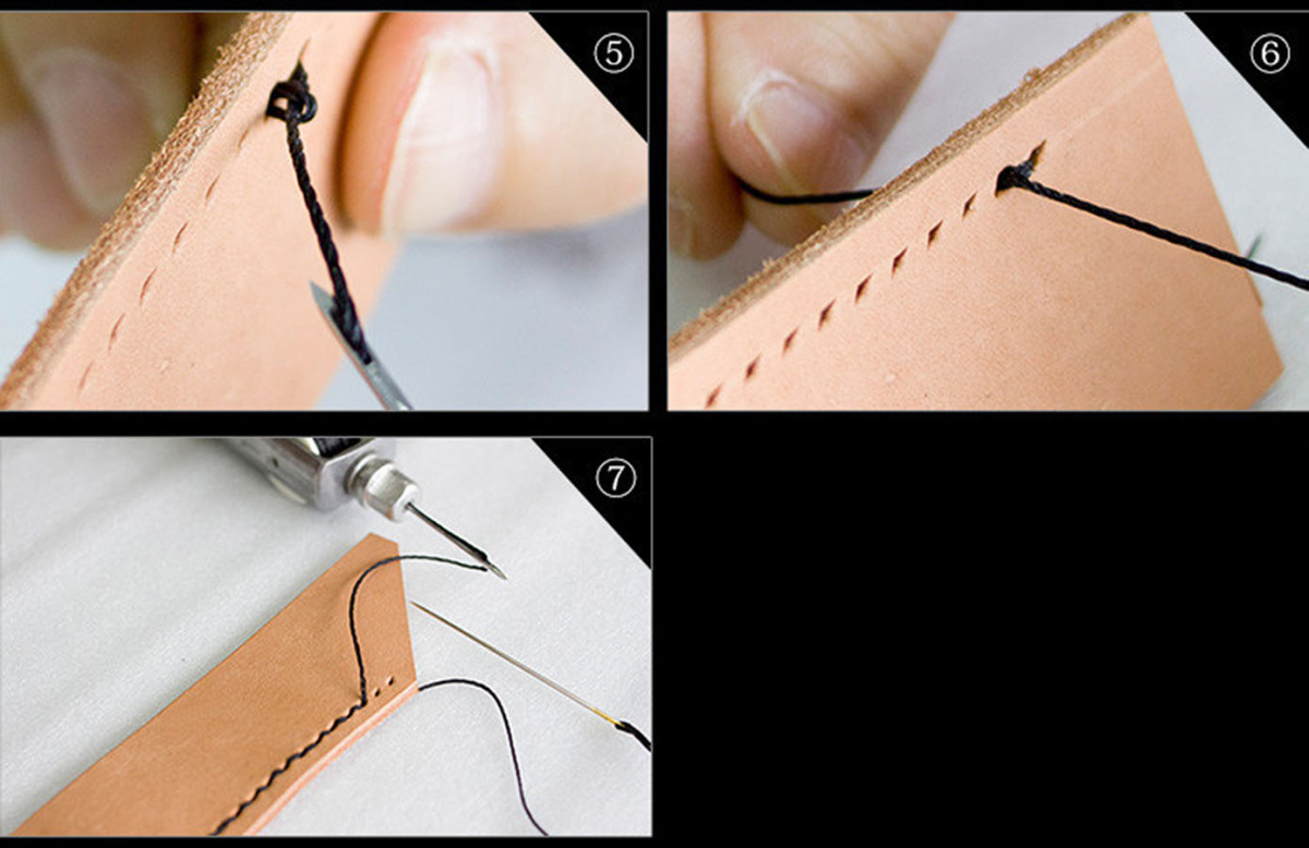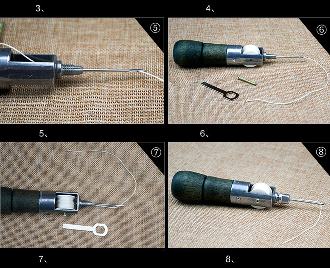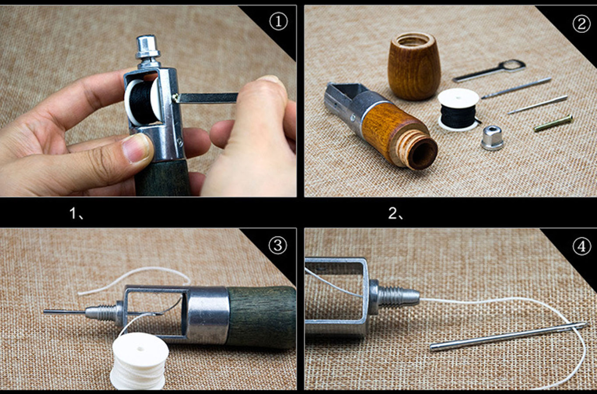 Ручная швейная машинка для шитья кожаных изделий ( (шило со шпулькой для ниток и цанговым зажимом для игл). При помощи данного устройства для шитья кожи можно прошивать несколько слоев ткани или плотные материалы (кожа, замша, мех, фетр, войлок и др.). Ручной инструмент сокращает время работы, позволяет выполнить аккуратные ровные швы.