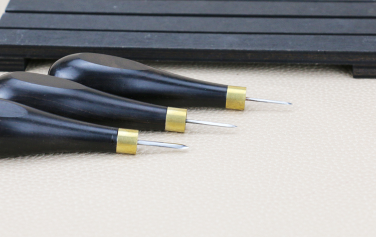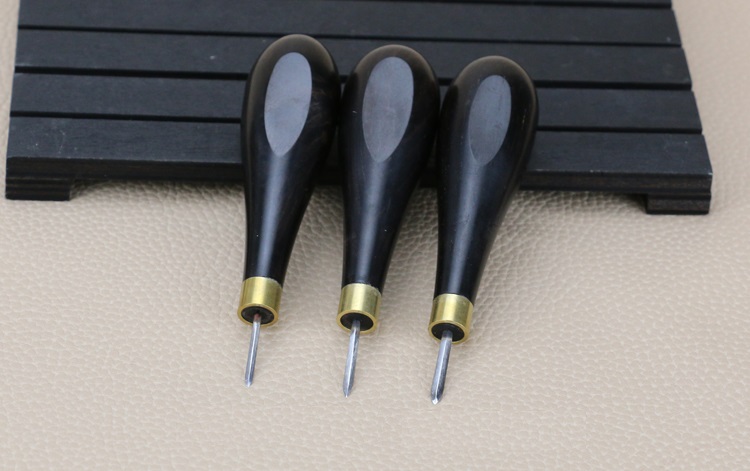 Шило острое, из высококачественной стали. Ромбовидное, швейное шило с полированной ручкой из ценных пород дерева. Используется для прокалывания отверстий при шитье классическим седельным швом или докалывании при использовании пробойников.