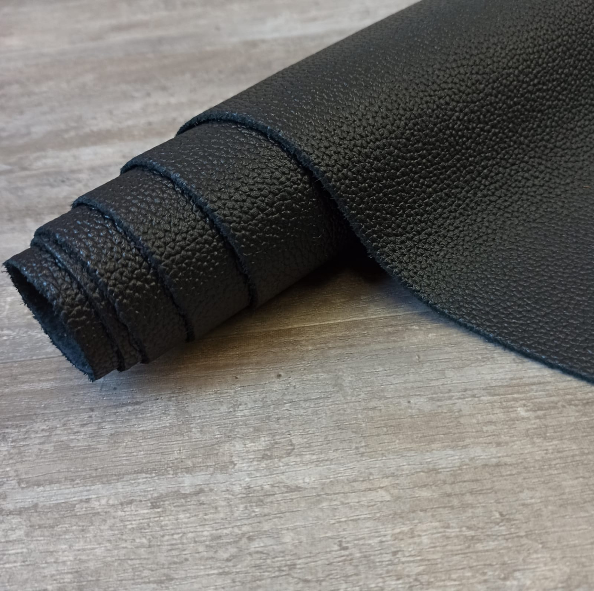 Кожа КРС хромового дубления с тиснением плитой узор крупнозернистый. Кожа плотная, мягкая, пластичная. Лицо гладкое, матовое, фактурное.