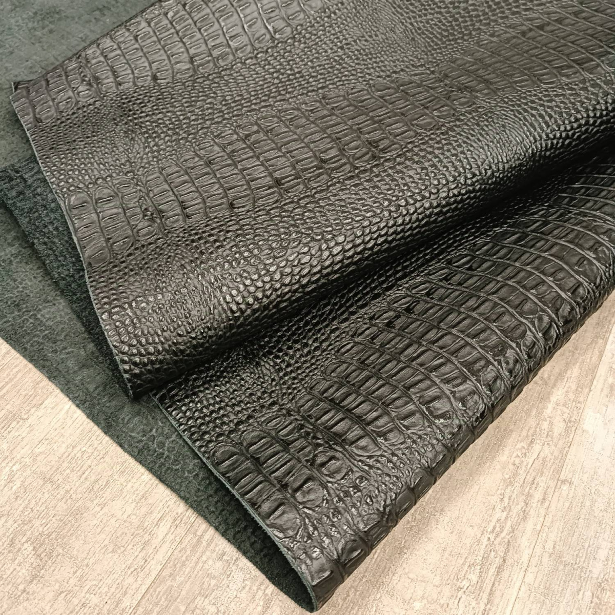 Кожа натуральная КРС хромового дубления с тиснением плитой под крокодила. Кожа тонкая, плотная. Лицо гладкое, матовое, чистый цвет и узор.