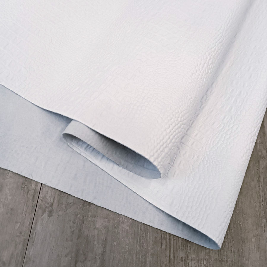 Кожа натуральная спилок КРС хромового дубления с тиснением под каймана. Кожа тонкая, мягкая. Лицо гладкое, матовое без покрытия, красивый градиентный цвет и узор.