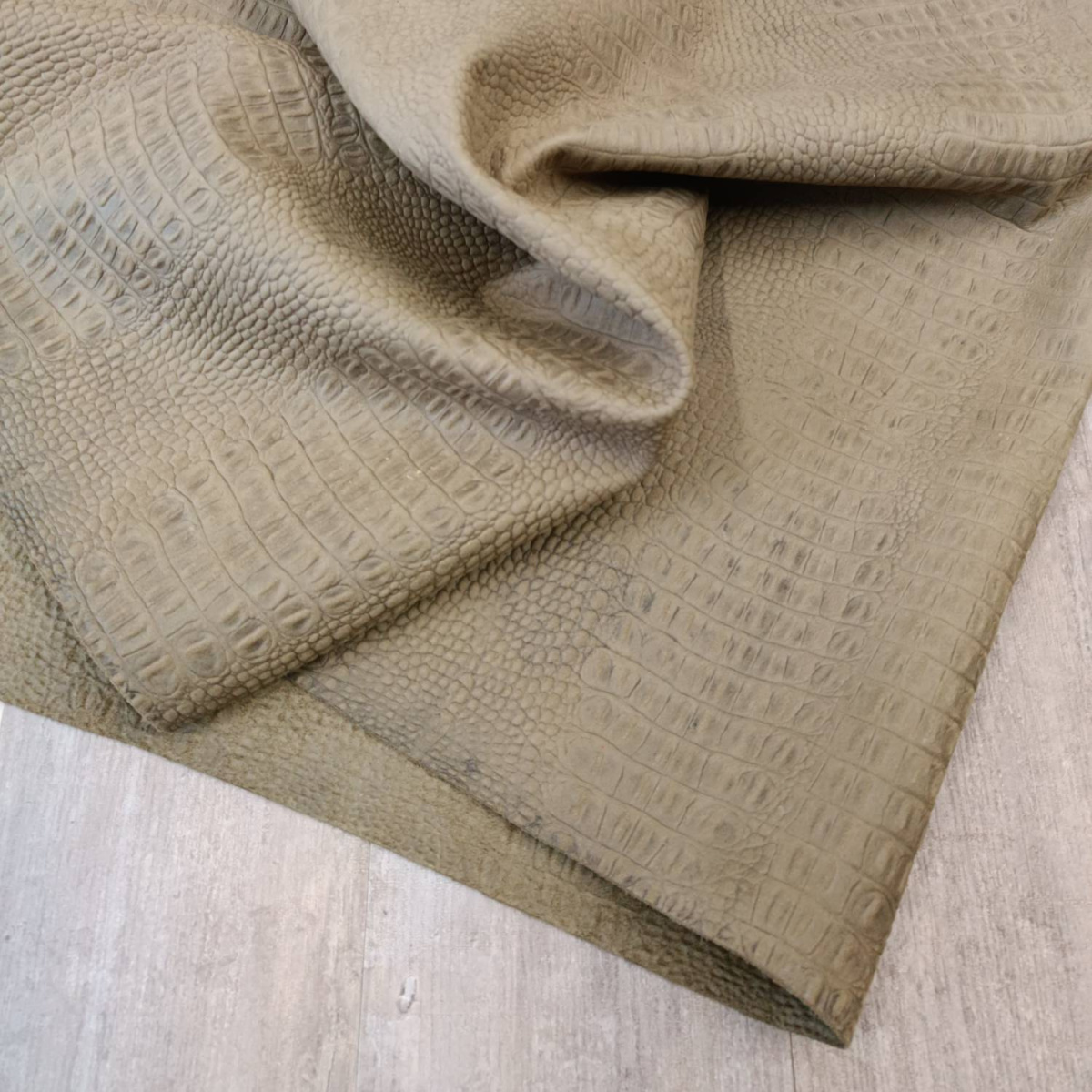 Кожа натуральная спилок КРС хромового дубления с тиснением под каймана. Кожа тонкая, мягкая . Лицо гладкое, матовое без покрытия, красивый градиентный цвет и узор.