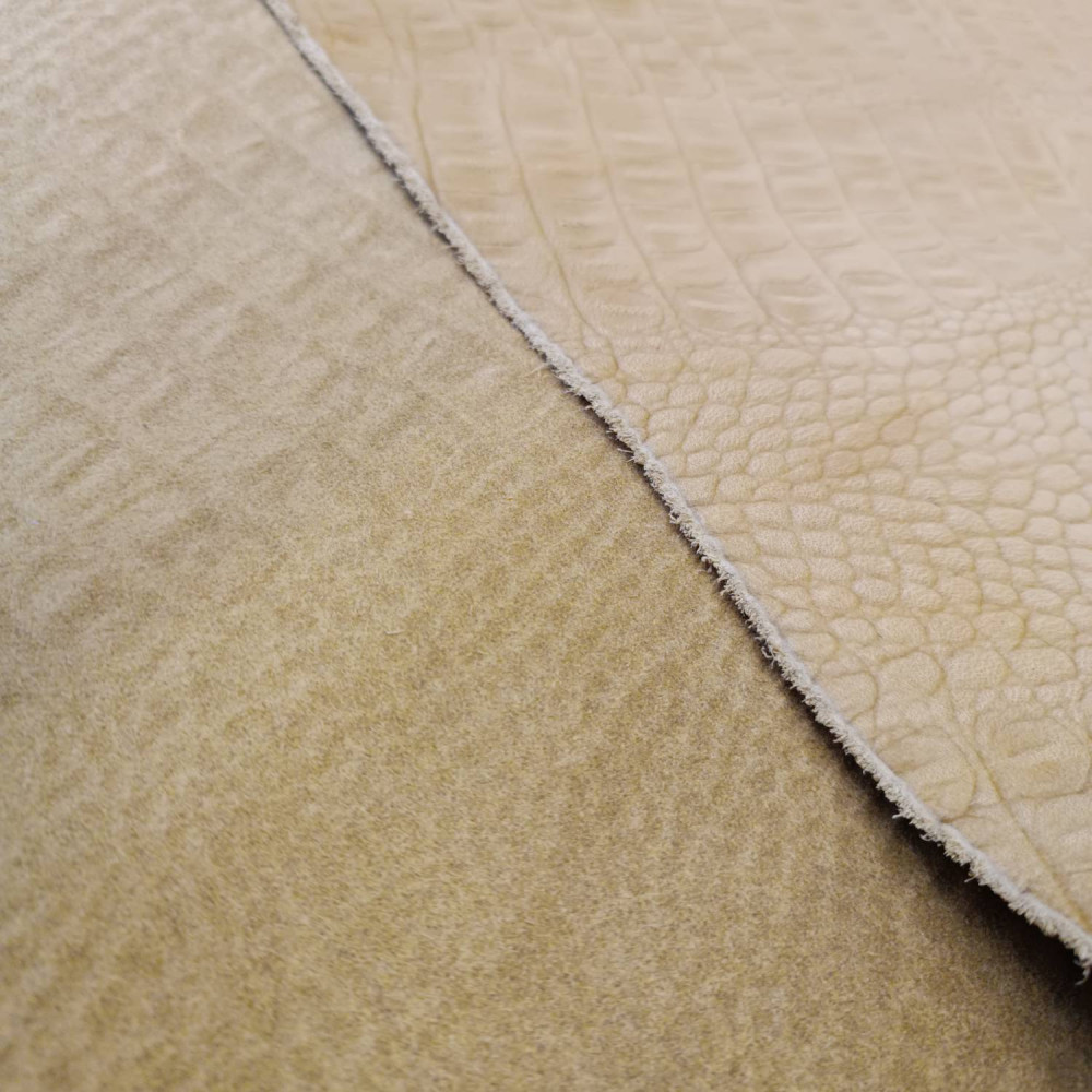 Кожа натуральная спилок КРС хромового дубления с тиснением под каймана. Кожа тонкая, статичная жесткая. Лицо гладкое, матовое без покрытия, красивый градиентный цвет и узор.