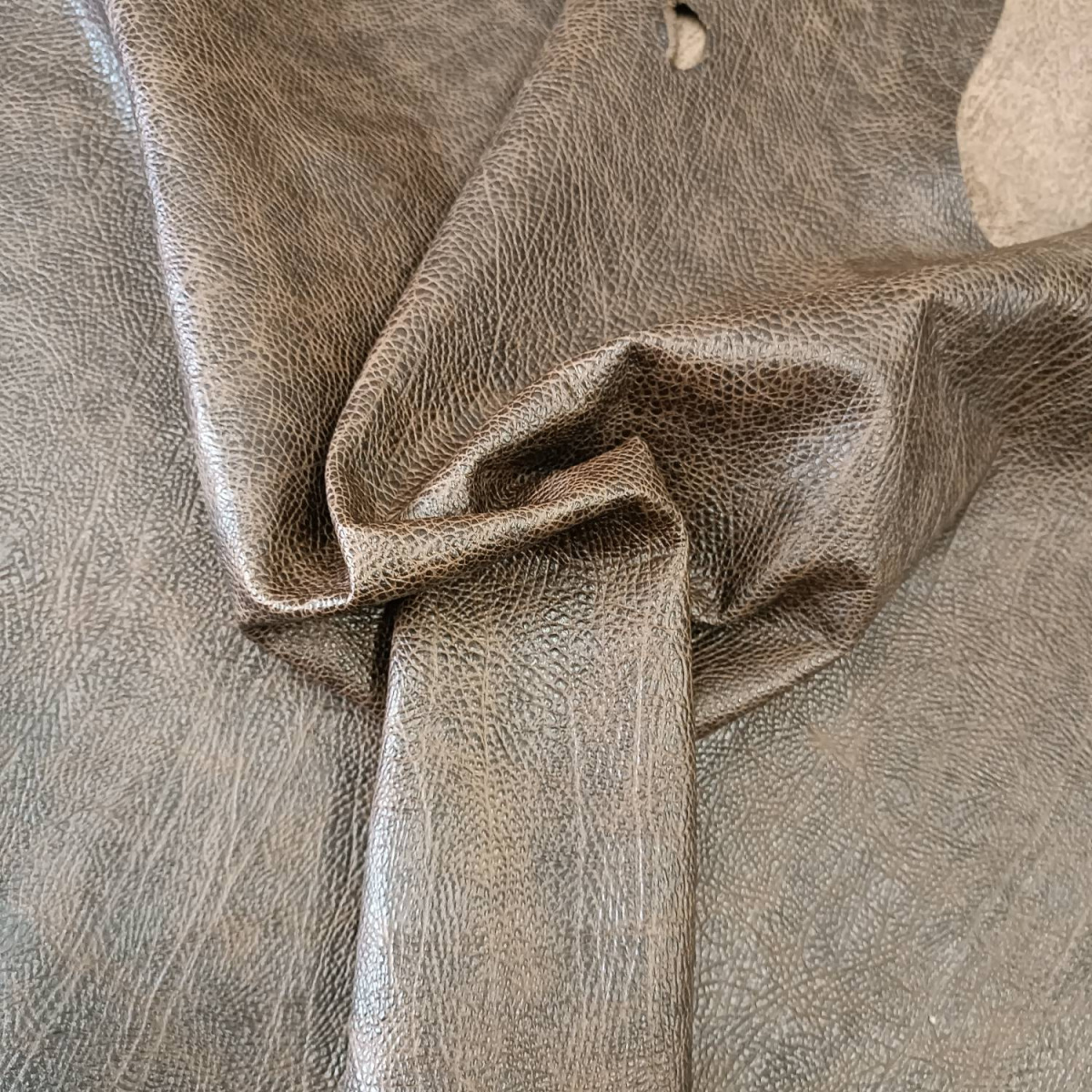 Кожа КРС хромового дубления с тиснением плитой под слона . Кожа тонкая, плотная. Оригинальный цвет и узор.
