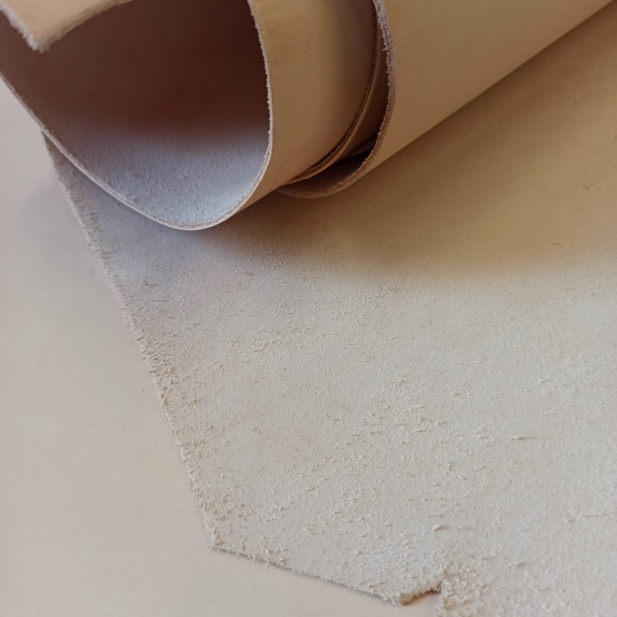 Кожа растительного дубления, не окрашенная, без финиша. производство Америка. Бахтарма ровная, не ворсистая. Лицо гладкое, белое, имеет минимум дефектов. Кожа не пересушена, мягкая, пластичная, хорошо поддаётся тиснению и формованию.