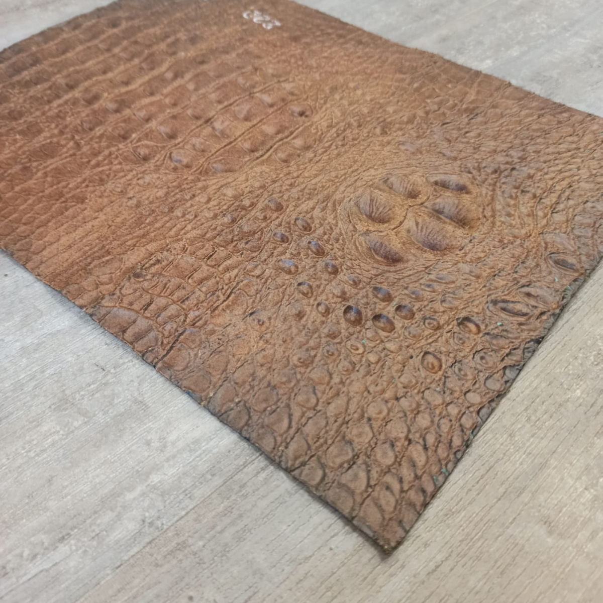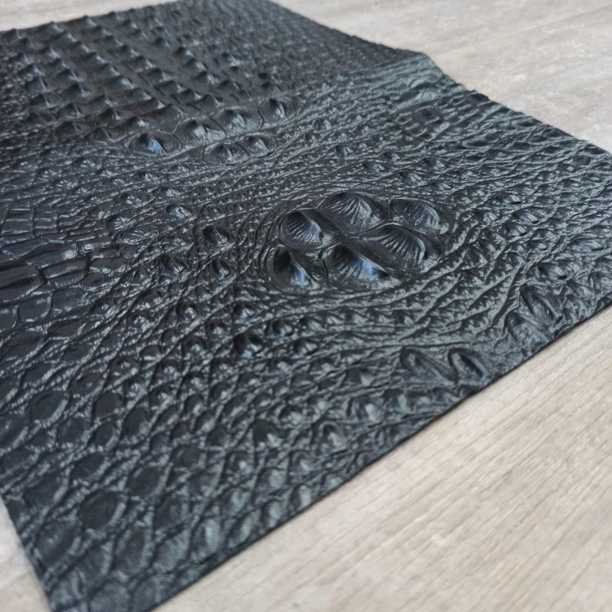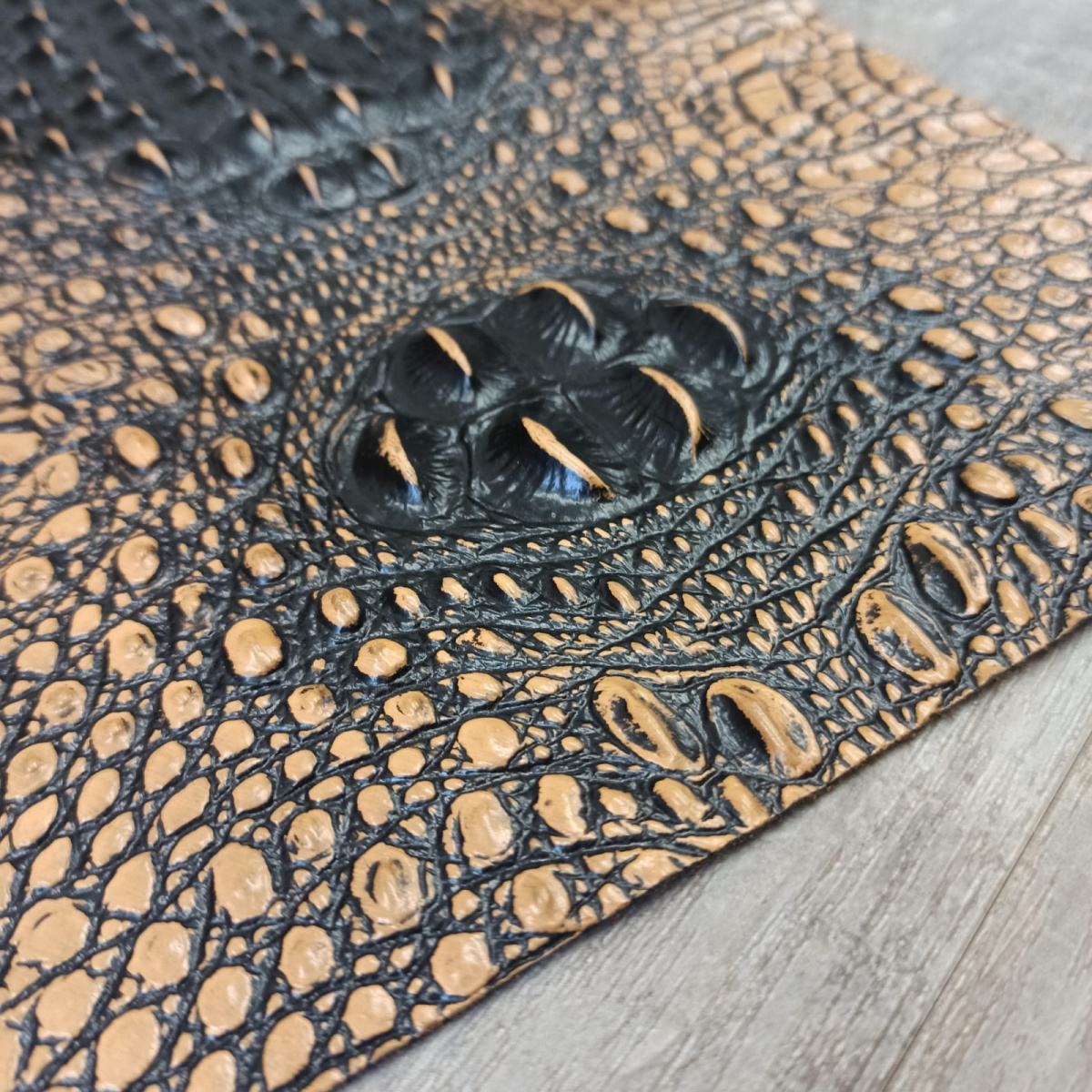 Кожа Крс с тиснением под крокодила галантерейной выделки - отличная находка для творческих кожевников. Экзотическую натуральную кожу в форматах используют для пошива мелких галантерейных изделий - часовых ремешков, браслетов, чехлов телефонов, ножен и др., а также для аппликаций и декора на кошельки, портмоне, сумки.