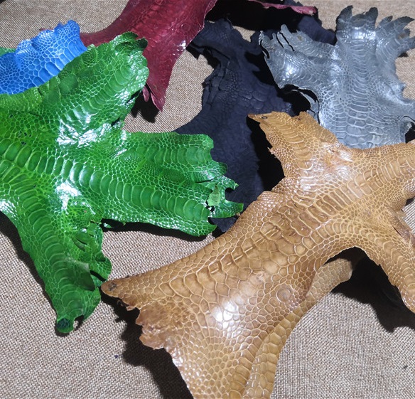 Кожа с лапок индейки галантерейной выделки - отличная и оригинальная находка для творческих кожевников. Экзотическую натуральную кожу индейки используют для пошива мелких галантерейных изделий - часовых ремешков, браслетов, чехлов телефонов и др., а также для декоративных вставок на кошельки, портмоне, сумки