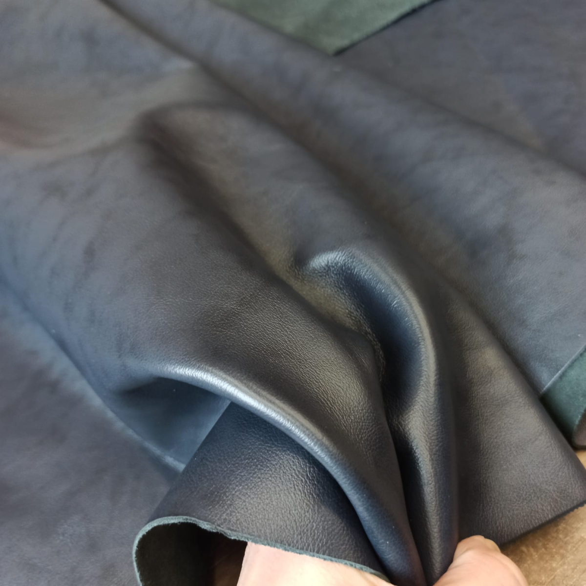 Натуральная кожа КРС хромового дубления. Кожа с лицевым покрытием, с лощением хорошая выделка, мягкая, пластичная.