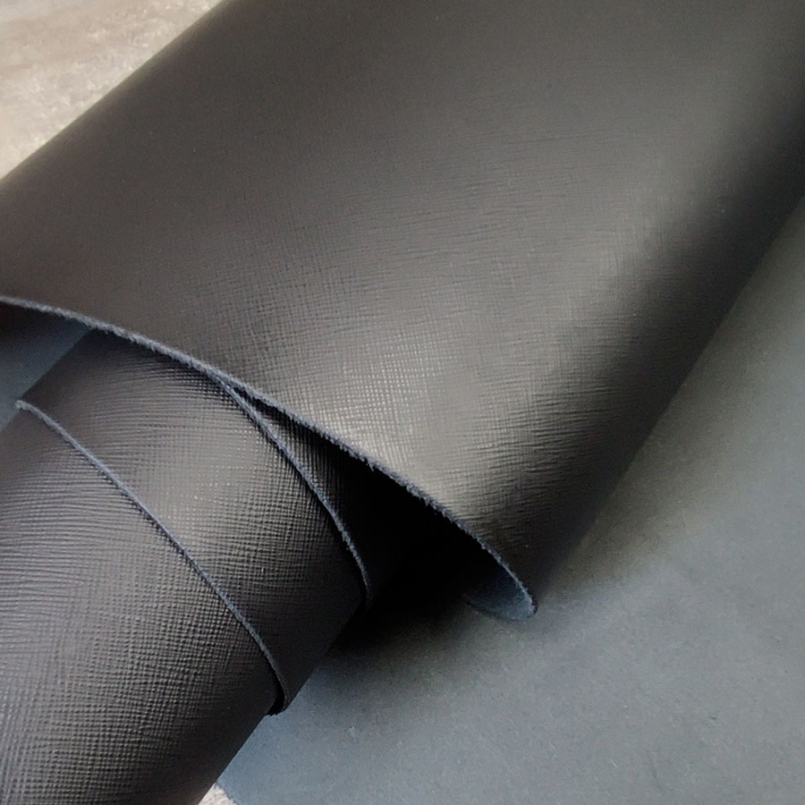 Кожа КРС хромового дубления - лицевая, с тиснением Сафьяно. Благодаря этой текстуре с диагональным мелким тиснением кожа приобретает высокую прочность и устойчивость к истиранию, царапинам. Кожа с финишным покрытием