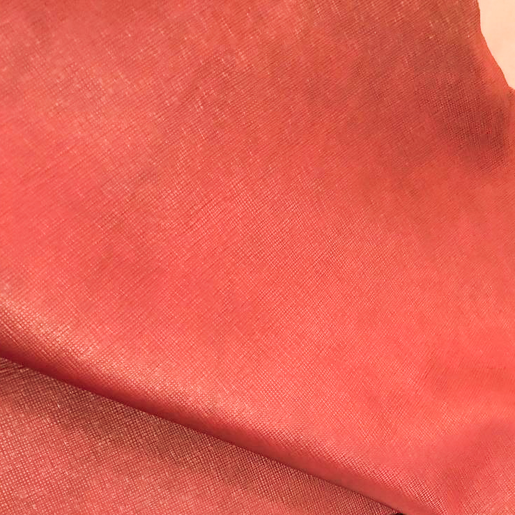 Итальянская кожа КРС растительного дубления - лицевая, с тиснением Сафьяно. Благодаря этой текстуре с диагональным мелким тиснением кожа приобретает высокую прочность и устойчивость к истиранию, царапинам