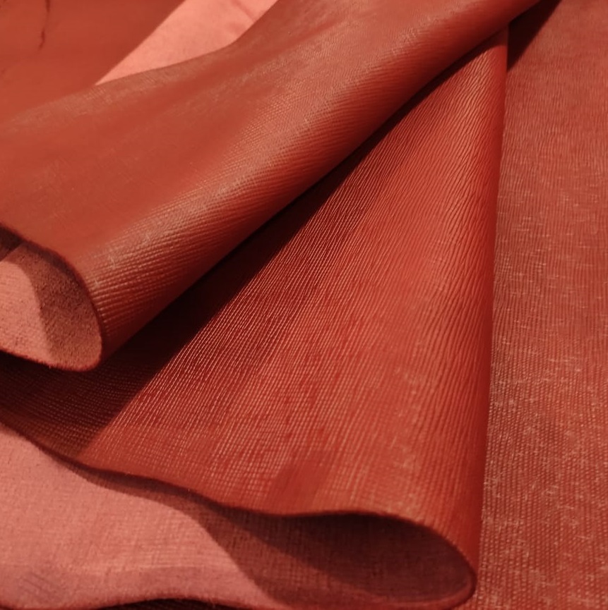 Итальянская кожа КРС хромового дубления - лицевая, с тиснением Сафьяно. Благодаря этой текстуре с диагональным мелким тиснением кожа приобретает высокую прочность и устойчивость к истиранию, царапинам. Кожа с финишным покрытием