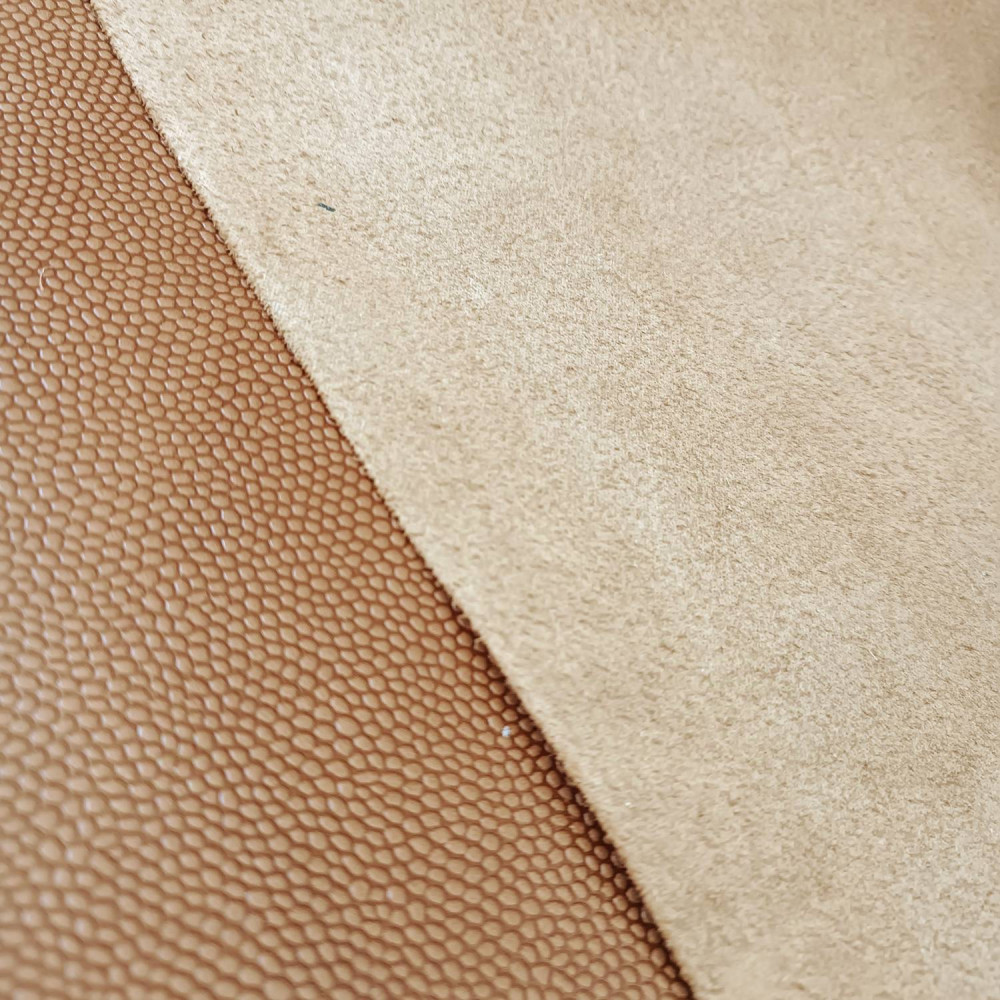 Кожа КРС хромового дубления - лицевая, с тиснением Шагрень. Благодаря этой текстуре с диагональным мелким тиснением кожа приобретает высокую прочность и устойчивость к истиранию, царапинам. Кожа с финишным глянцевым покрытием.