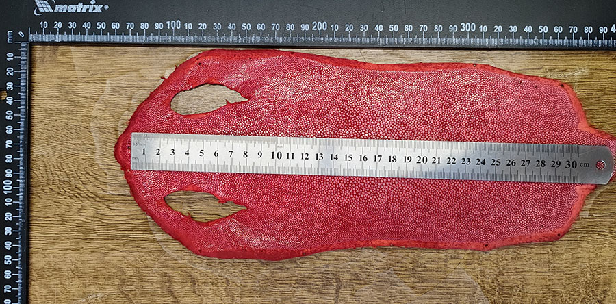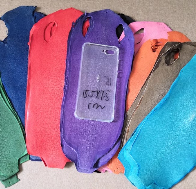 Натуральная кожа ската разных цветов, посмотреть можно на видео