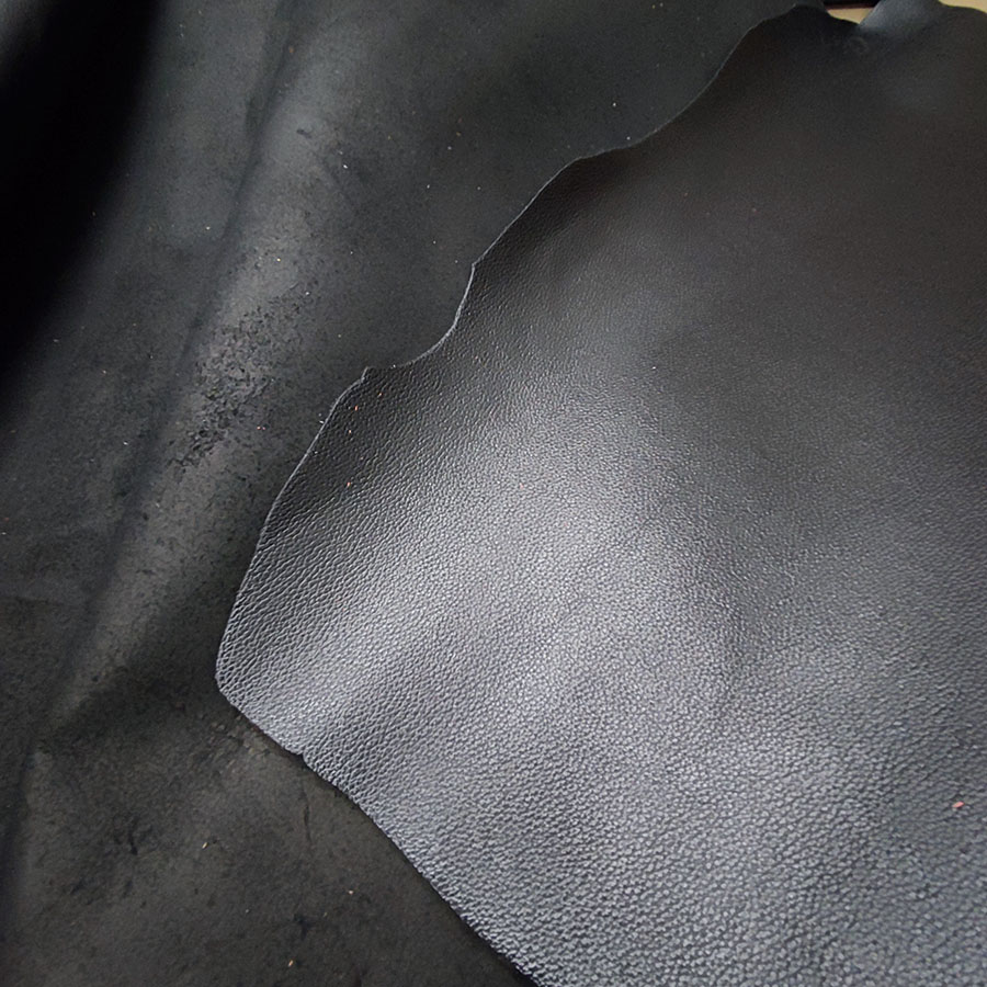 Кожа КРС хромового дубления с тиснением плитой узор крупнозернистый. Кожа плотная, мягкая, пластичная. Лицо гладкое, матовое, фактурное.