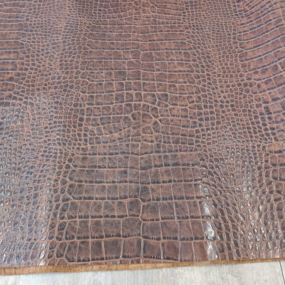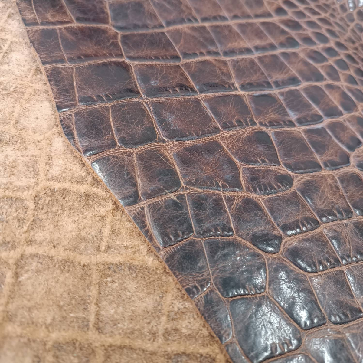 Кожа КРС хромового дубления с тиснением плитой под каймана. Кожа тонкая, плотная. Лицо гладкое, оригинальный цвет и узор.
