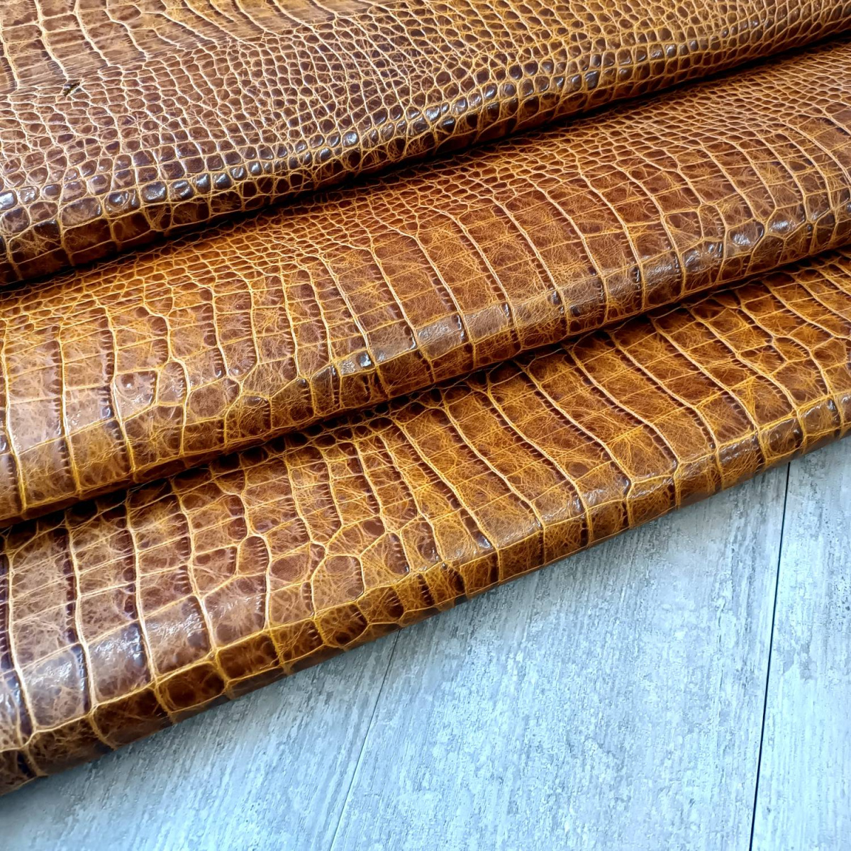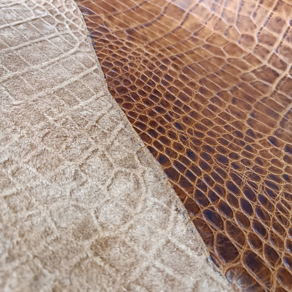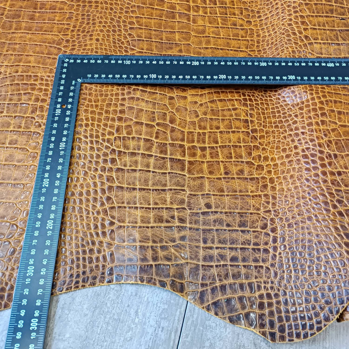 Кожа КРС хромового дубления с тиснением плитой под каймана. Кожа тонкая, плотная. Лицо гладкое, оригинальный цвет и узор.