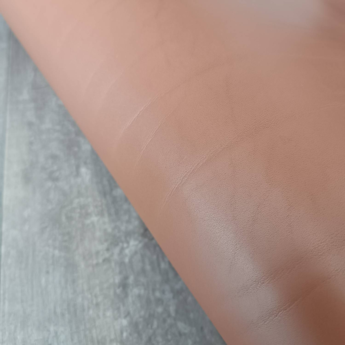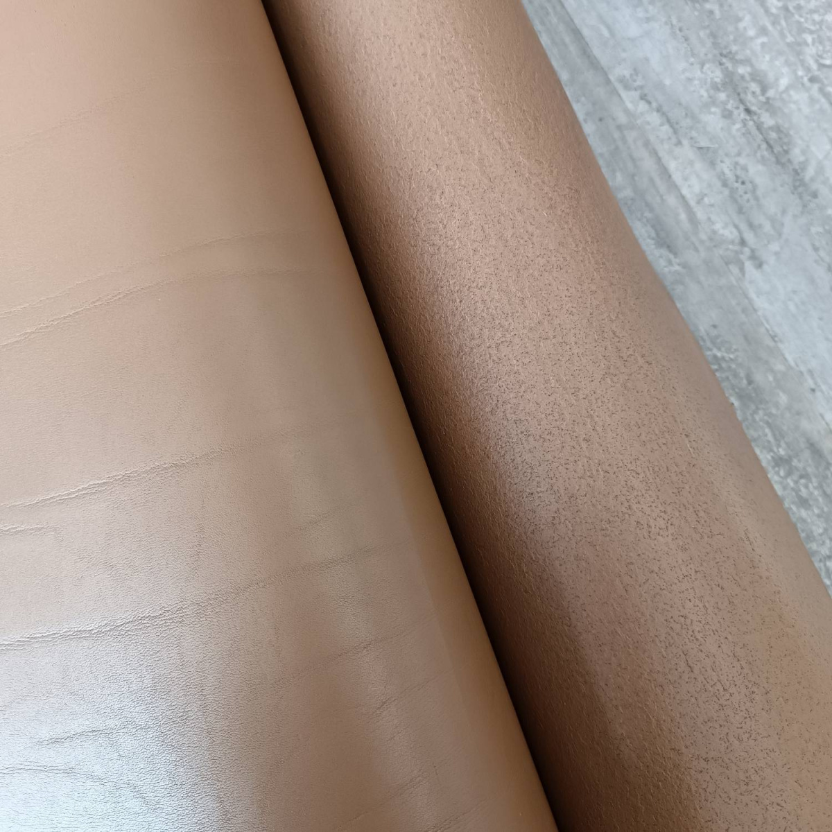 Чепрак хорошей плотности, жёсткость средняя, с финишным покрытием, поверхность гладкая, матовая. Бахтарма гладка, с покрытием карамельного цвета.